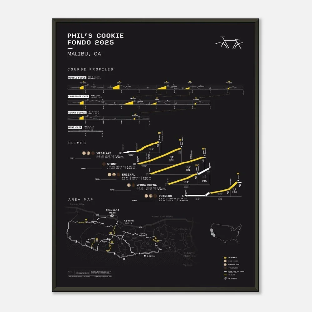 Celebrate the iconic climbs of the Santa Monica Mountains with our detailed profile series, featuring 29 epic ascents tailored for cycling enthusiasts. Designed for inspiration and route planning, this artful piece blends precision and style, perfect for your wall, workspace, or training area.