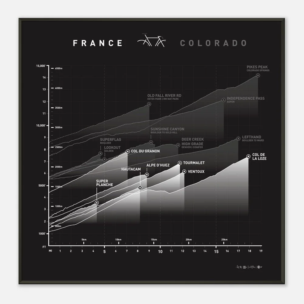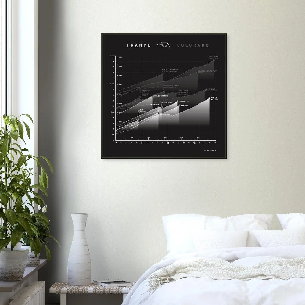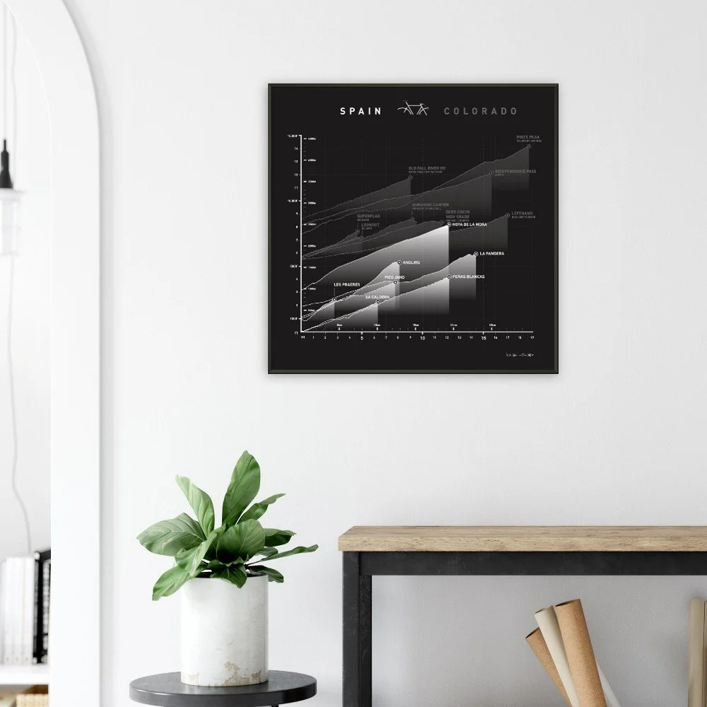 Celebrate Boulder’s legendary climbs with this clean, modern poster featuring 25 classic road routes—from short grinds like Chapman to epic hauls like Lefthand Canyon. It’s the perfect combo of cyclist brain candy + wall-worthy design. Details include: